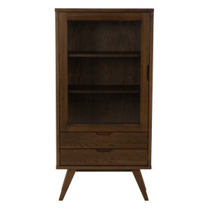 A világos edzett üvegből készült ajtó mögött 2 állítható polc rejtőzik, aminkönyveket, étkészleteket és dekorációkat is elhelyezhetsz. A sima csúszást biztosító fémfutókkal ellátott 2 fiókba pedig azokat az apróságokat teheted, amiket nem szeretnél szem előtt tartani.
