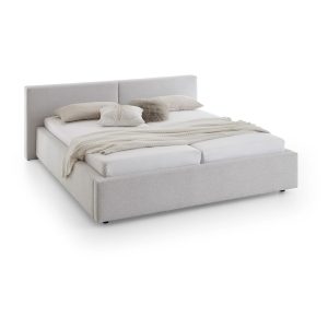 Termékleírás Ezüstszínű kárpitozott ágyneműtartós franciaágy ágyráccsal 180x200 cm Cube – Meise Möbel